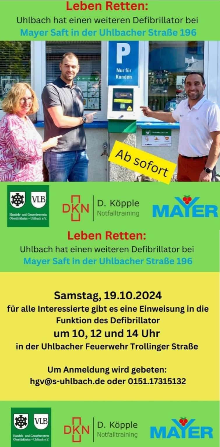 Leben Retten: Uhlbach hat einen weiteren Defibrillator